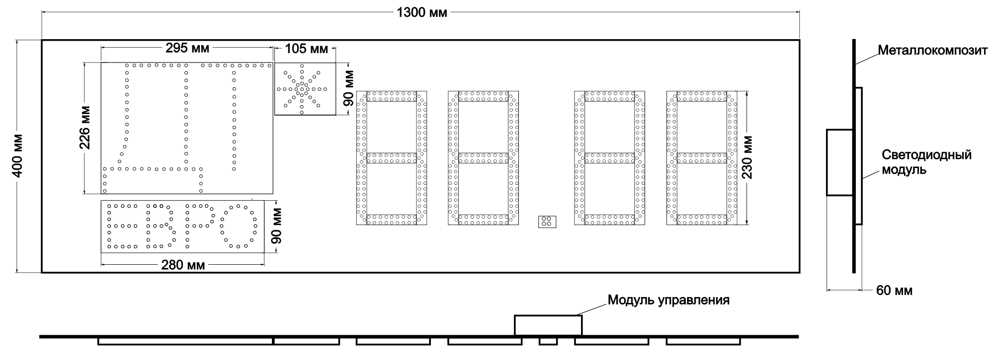 Панель представлена в "Эконом" варианте - композитная подложка. Панель на композитной основе имеет степень IP00 пылевлагозащищенности с лицевой стороны и IP50 – с тыльной стороны.
